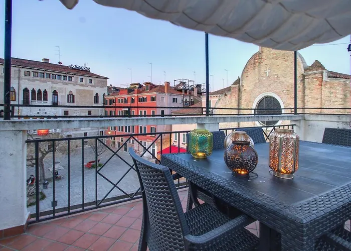 Das Apartment liegt im Stadtteil Venice Biennale, in einer Entfernung von 1 km vom Uhrenturm St. Markus. In 10 Fahrminuten Entfernung von den Apartments findet man die Ca' Pesaro. Die Ferienwohnung Basilica-Terrace ist ebenfalls gleich neben den Giardini della Biennale gelegen.